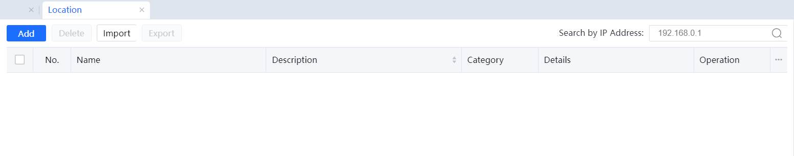 Location objects can be imported and exported. You can export location objects in .inf format. Location objects can also be searched by IP address. Location objects cannot be searched by VLAN ID or wireless network. When you search location objects by IP address, the IP address segment needs to be displayed. For example, location object A is 2.2.2.2–5.5.5.5. If you search for 3.3.3.3, the location object needs to be displayed.