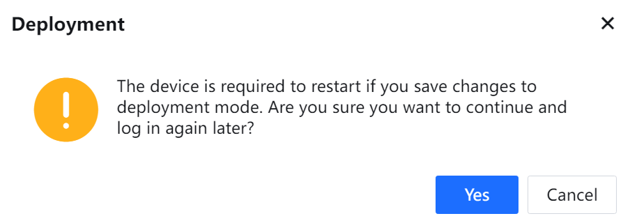 Restart the device for the configurations to take effect. Click Yes in the dialog box that asks for your confirmation.