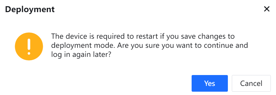 Clicks OK[A245], and the following dialog will notify you that applying the settings requires restarting the device. To apply the changes, click Yes.