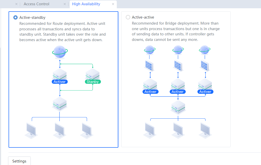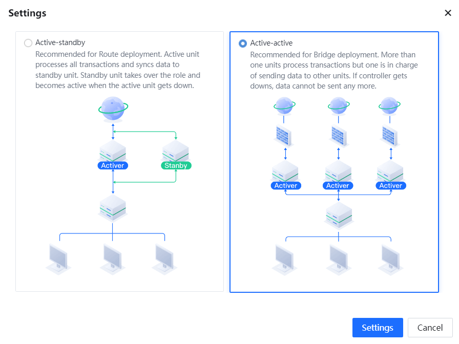 - Select Active-Active and click Settings.