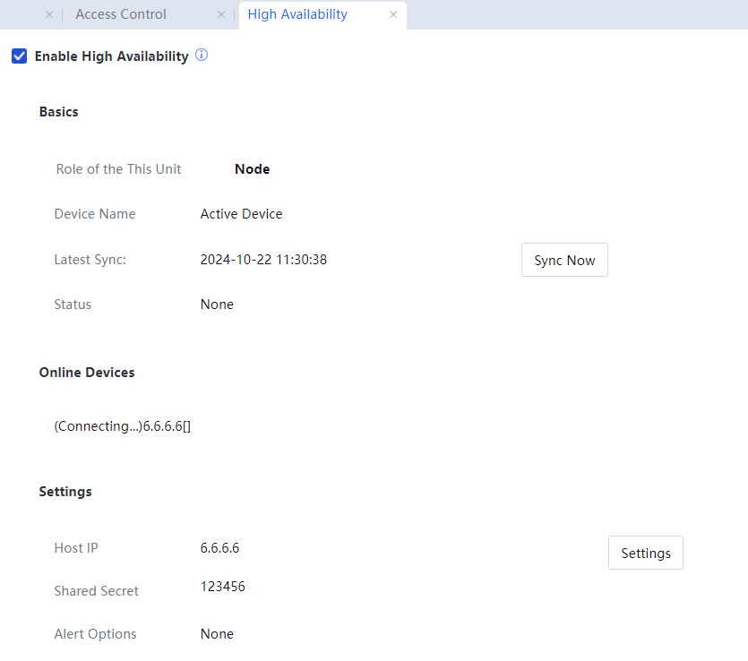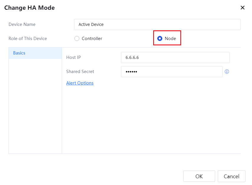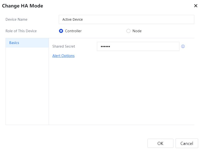 Shared Secret: Configure a key the active device uses to connect to the standby device. This key must be the same as that configured for the standby device.