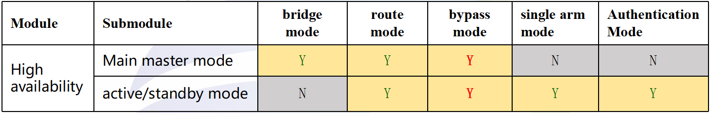 Active unit remains active always while standby unit is failed: Including ARP detection and ICMP detection. When the standby device is already in the fault status, and the current device only has ARP detection failure or ICMP detection failure, the host status is still working normally.