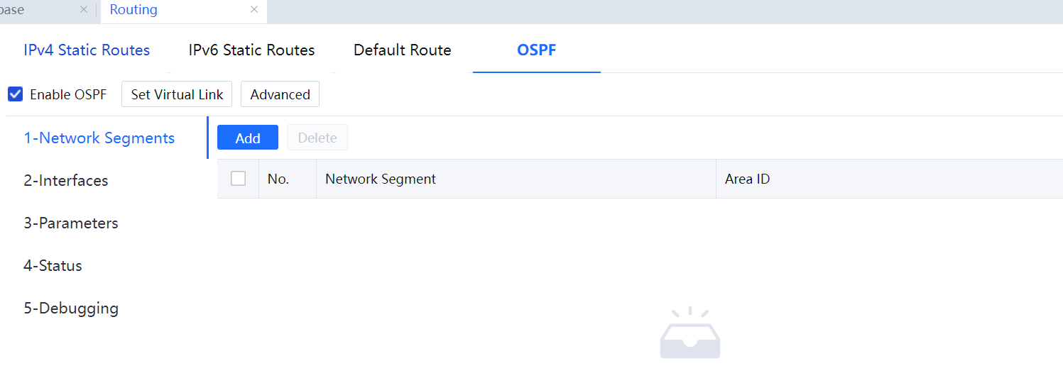 Click Set Virtual Link: When the area where IAG devices are located is not adjacent to the OSPF backbone area, the virtual link needs to be enabled and configured.