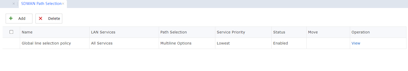 The default Global line selection policy cannot be deleted. Add a new SDWAN Path Selection policy:
