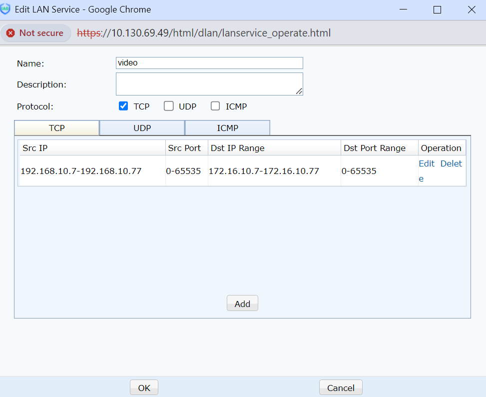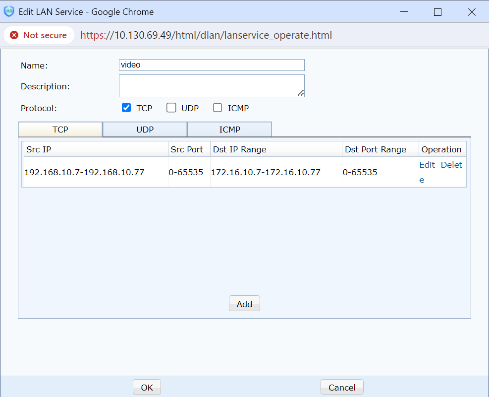 - Add a video conference service in Advanced > Edit LAN Service.