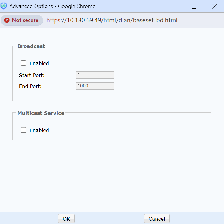 Broadcast: Specifies whether broadcast packets are transferred in VPN channels. Only the broadcast packets for the specified ports are transferred to prevent broadcast storms at both ends of a VPN. Applications such as My Network and IPMSG require broadcast packets.