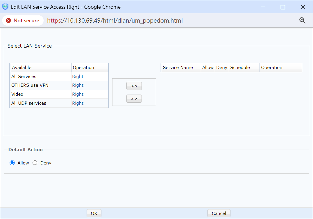 Edit LAN Service Access Right: Assign permissions to users connected to a VPN. This helps specify the services accessible to users. By default, there is no limit.