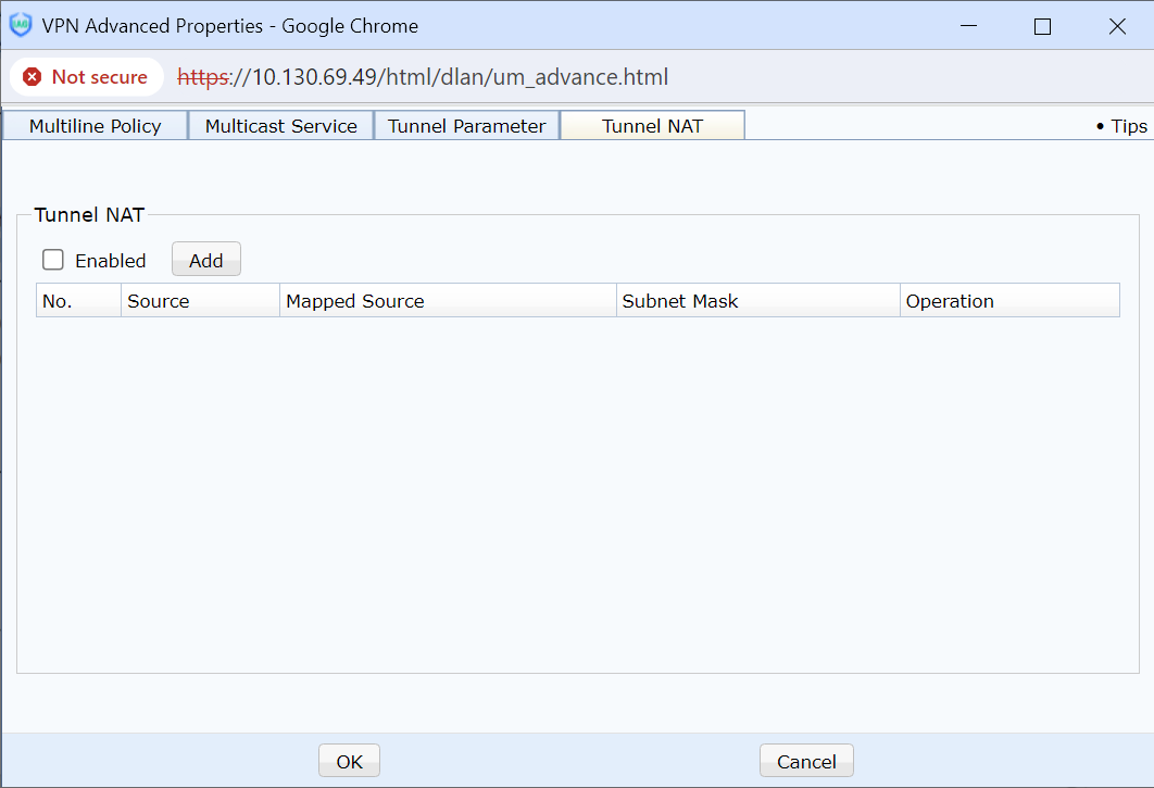 Before using Tunnel NAT in Advanced, add the site's required virtual IP network segment in the Virtual IP Pool.