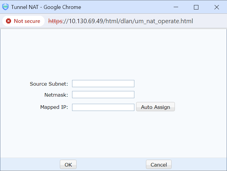 Click Add to enter the matched source subnet segment, mapped IP, and netmask [A266]required by this rule in the dialog box and to allow the device to assign an IP segment from the virtual IP pool automatically. The page is as follows: