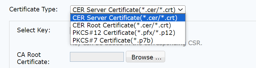 Certificate Type: Select the local certificate or root certificate type, as shown in the following figure.