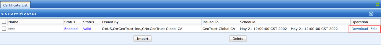 The imported root certificate or local certificate can be downloaded.