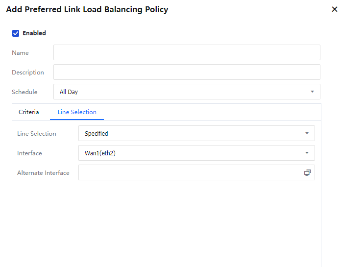 Set the Link Load Balancing. The device routes data from the internal network segment to the education network segment over WAN1 (Education Network Line) based on the specified Link Load Balancing.