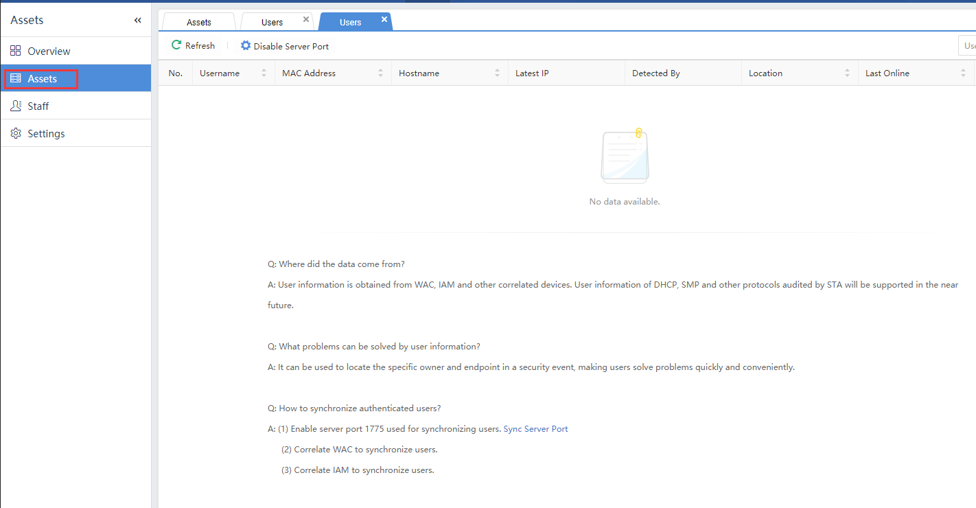 After configuration, in Asset Center > Endpoint, click User List to view the user list: