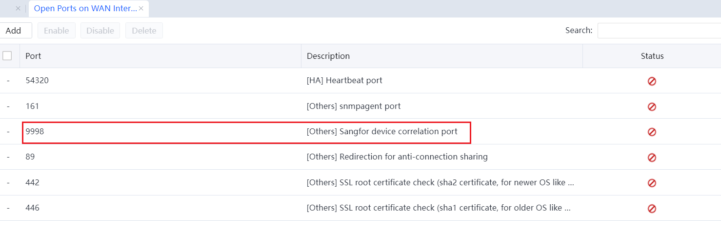If the IAG device is deployed in routing mode, the Cyber Command device needs to open the TCP9998 port on the WAN interface.