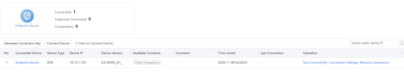Upon configuration completion, the successfully correlated Cyber Command device status can be seen on the IAG device, and the device name is the customized one.