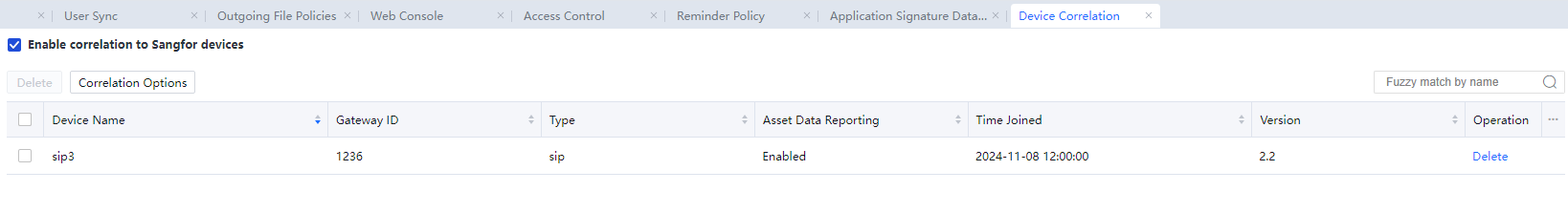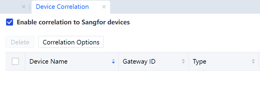 In System > General > Device Correlation, select Enable correlation for Sangfor devices.