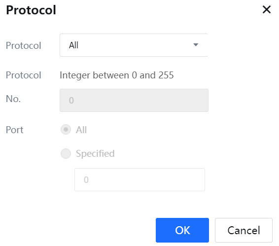 Protocol Type can be set to All, TCP, UDP, ICMP, or Others.