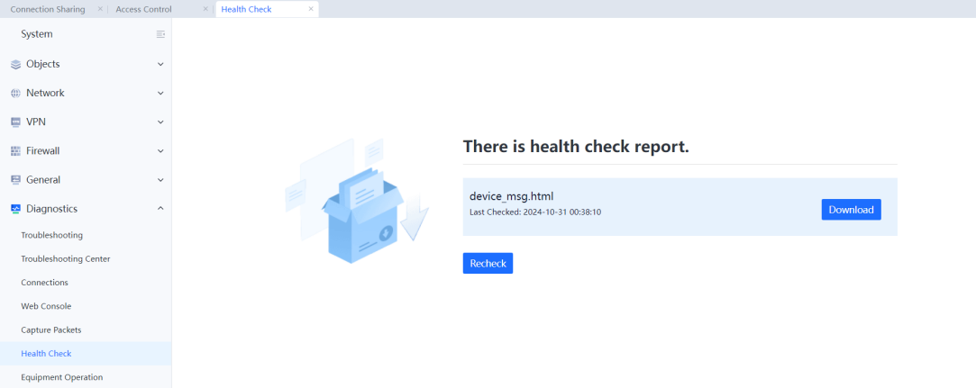 Device health check reports can be generated.