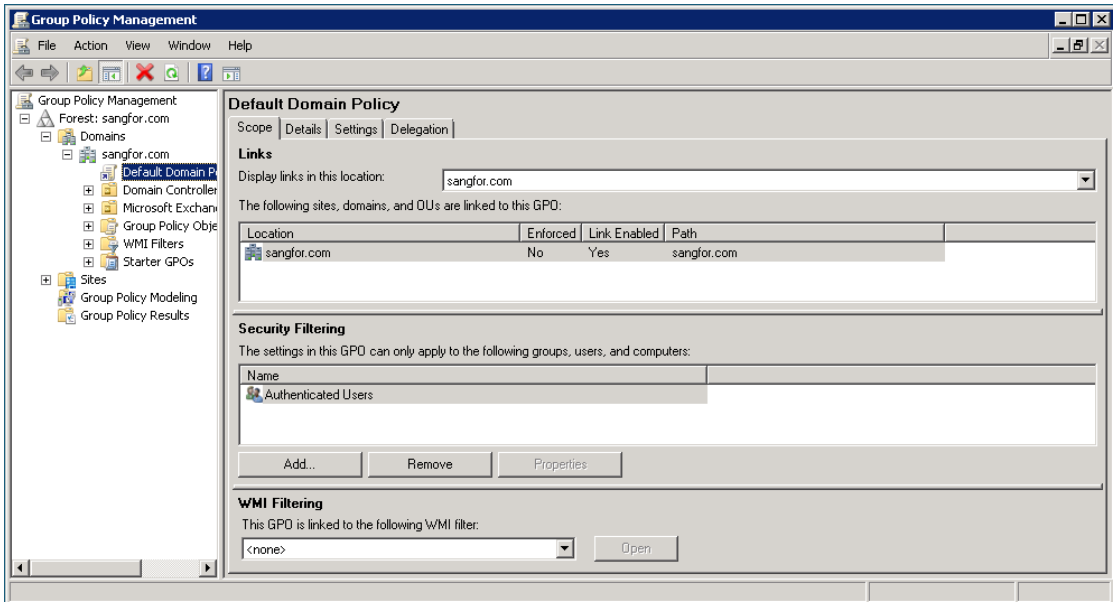 - In the displayed window, click Group Policy. Double-click the group policy Default Domain Policy.