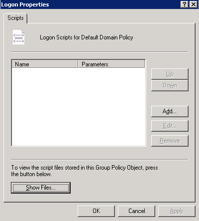 - Double-click Logon on the right. In the displayed Logon Properties window, click Show Files in the lower-left corner. A directory is opened. Save the login script file in the directory and close it.