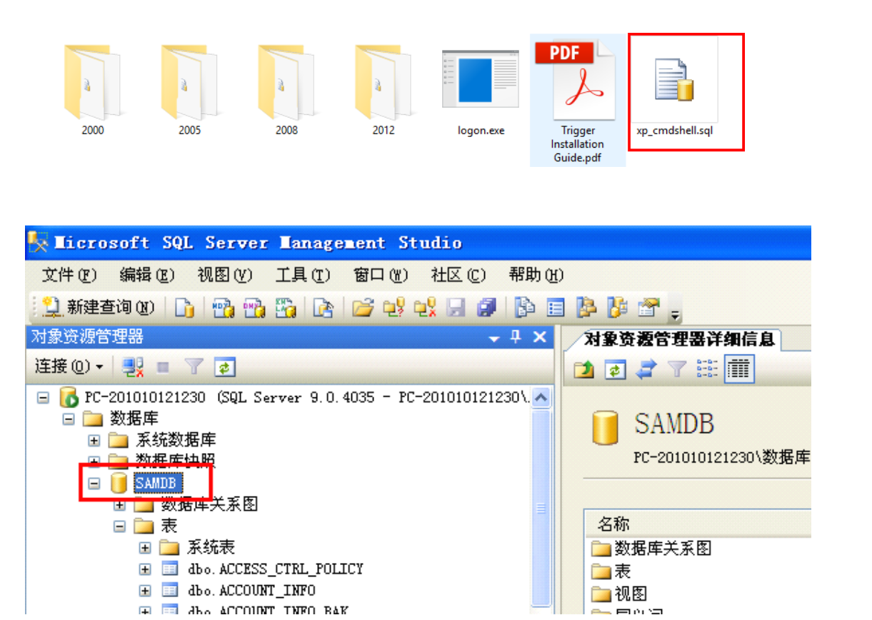 1. SQL Server 2000 and SQL Server 2005 have similar trigger installation processes. For SQL Server 2000, you need to select the triggers in the 2000 directory to install. If the stored procedure xp_cmdshell is used, xp_cmdshell.sql does not need to be run.