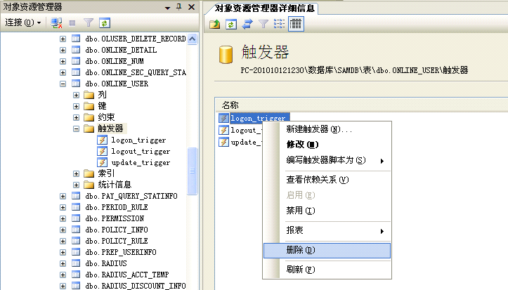 - To delete a trigger, right-click the trigger on the Object Resource Manager Details tab page and choose Delete. In the dialog box that is displayed, click OK.
