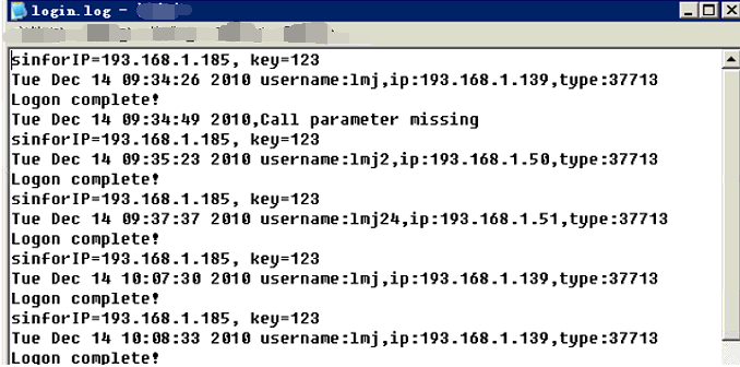 [zyl352]When logon.exe sends authentication information to the IAG, logging is not performed by default to ensure server performance. If logging is required, use the last line to replace the first line in the following figure. That is, add the -1 parameter to enable the logging function.
