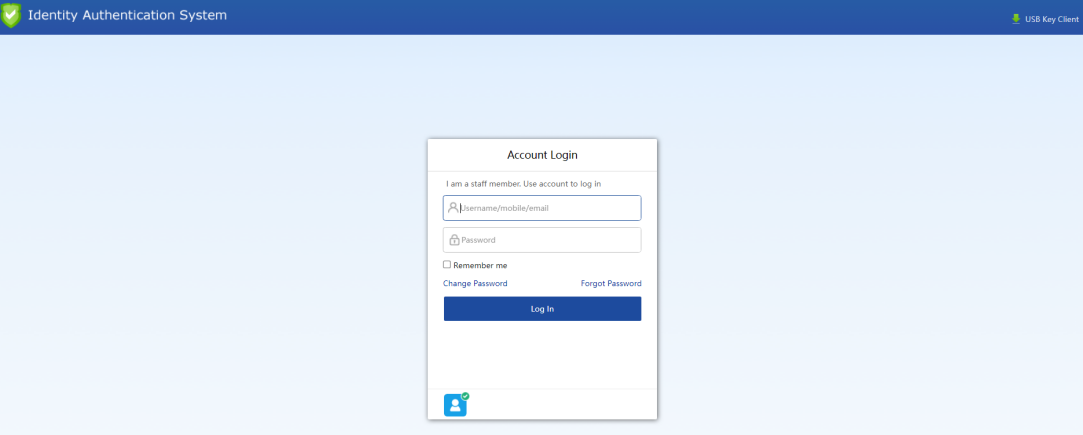 An employee selects Password Authentication, enters the username and password of a local account, and clicks Login for authentication. See the following figure.