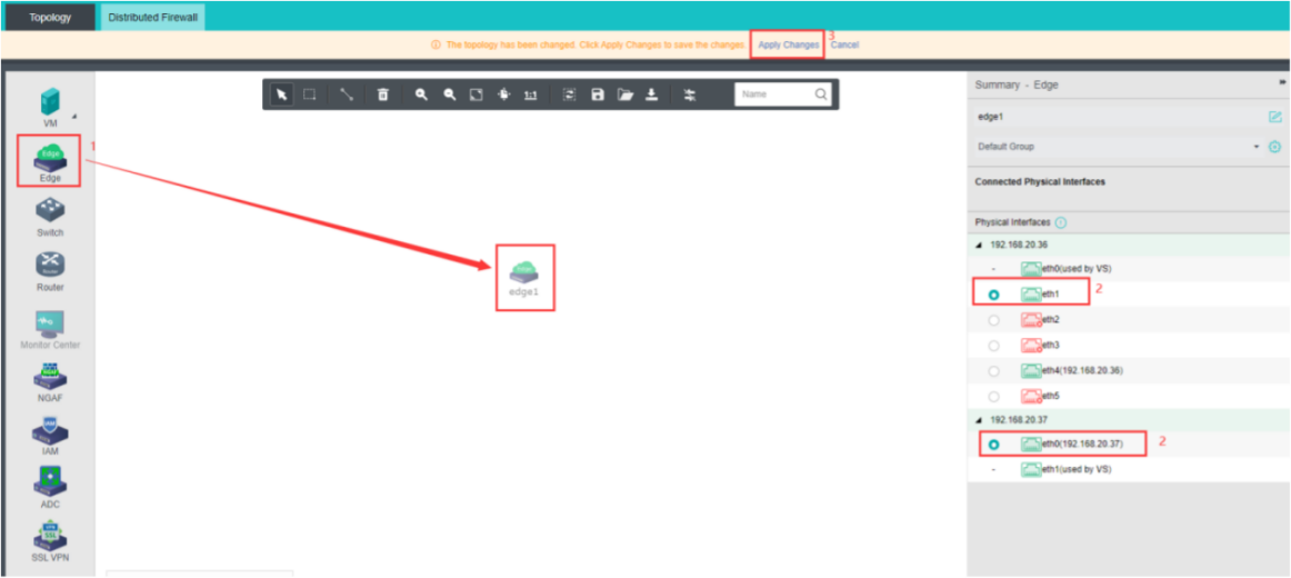 A virtual machine may run on any node if multiple nodes form a cluster and provide business service. Therefore, an edge should be connected to an interface on each node. Furthermore, that interface should be connected to the same Level 2 physical switch, ensuring that virtual network traffic can go into the physical network through any node.