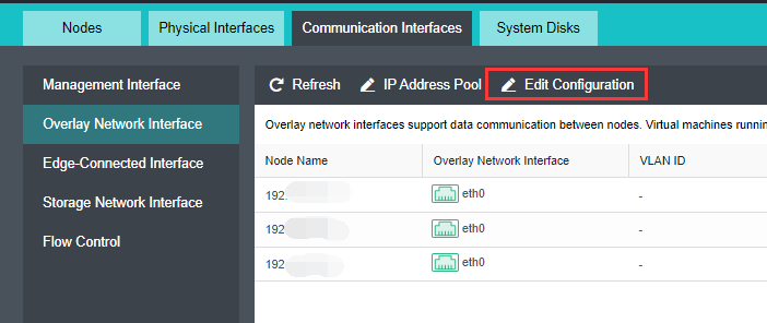 Click Edit Configuration and adjust the Overlay Network Interface interface.