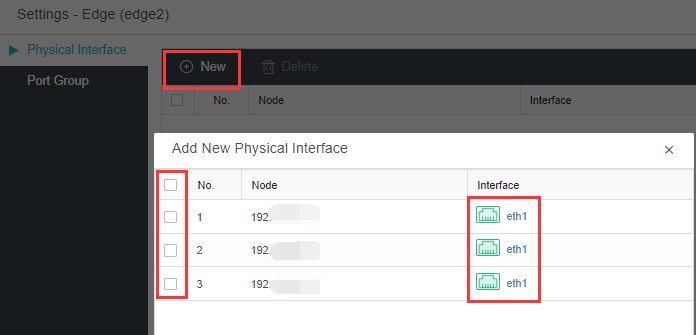 Click New to select the network interface and node.