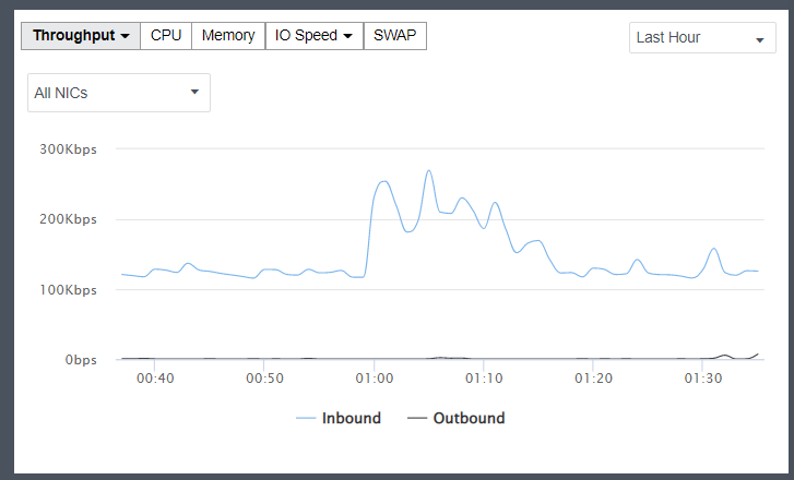 View Throughput, Flow Rate, CPU trend, Memory, IO Speed, and IO SWAP.