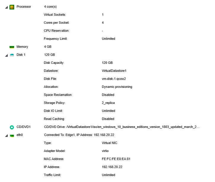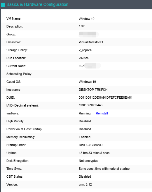 View the basic information of virtual machine and hardware configuration information in Basic & Hardware Configuration.