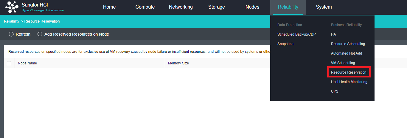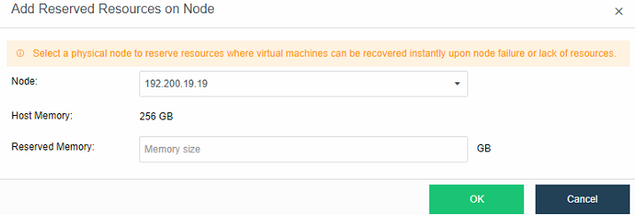 By configuring resource reservation, the memory of the node can be reserved. When a virtual machine fails HA, this part of the reserved resources can be used preferentially for recovery.