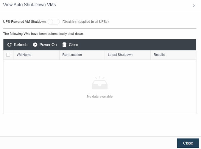 Click View Auto Shut-Down VMs to view which VM had been shut down automatically. The virtual machine can be powered on after disabling the UPS linkage policy.
