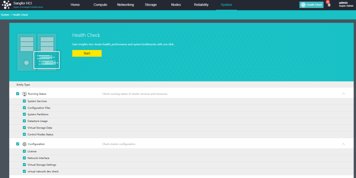 Before performing dangerous operations on the cluster, such as powering off the node, you must first use the health check to check whether the cluster status is normal. The operation can be performed only when everything is normal.