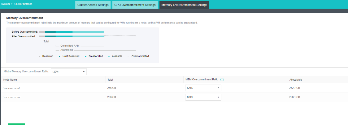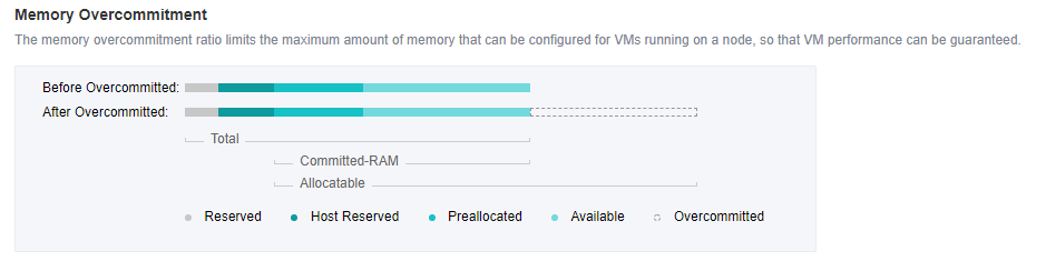 The larger the memory overcommitment ratio, the more virtual machines can be started. If the ratio is too high, the virtual machine may have latency, so please set it carefully. It is not recommended to enable memory overcommitment in core business scenarios.