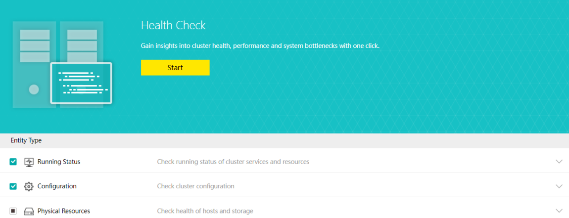 Health Check can identify the system hardware, configuration, and system operation, quickly locate the problem location (hardware, platform, and business), conduct the layered inspection, and provide detailed fault solutions.