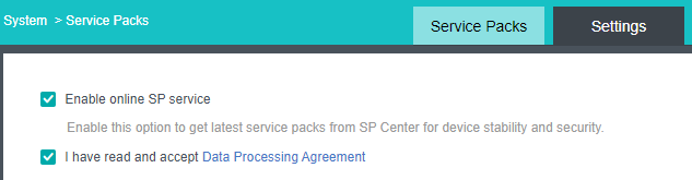 - Navigate to System > Service Packs and click the Settings tab.