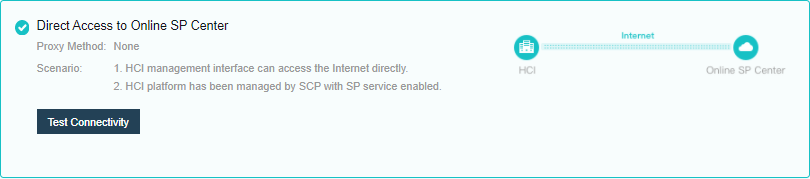 - After configuration, the patch service must test connectivity to ensure that the HCI platform can connect to the online SP center.