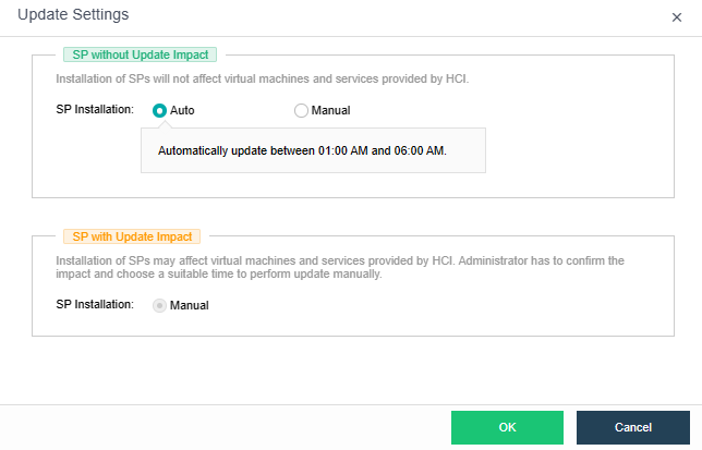 • Installation of SPs may affect VMs and services on HCI. You need to confirm the impact and choose a suitable time to perform the update manually.