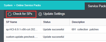 - Click Check for Updates to obtain service packs required by HCI.