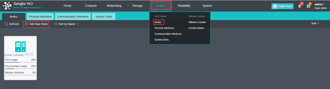 Navigate to Nodes > HCI Cluster > Nodes. You can add a node to a cluster by clicking Add New Node.
