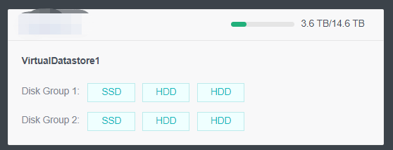 A disk group can contain SSDs and HDDs or only SSDs. In the above figure, the host has two disk groups.