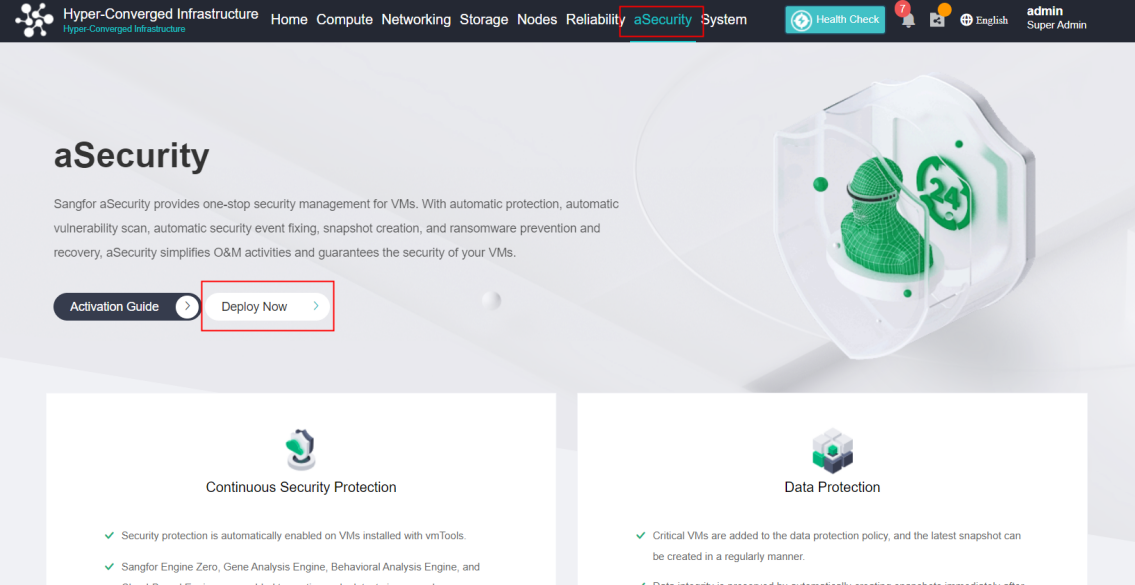 Only support deploying Sangfor aSecurity on Sangfor HCI 6.8.0 version currently.