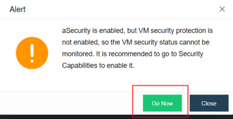 After installing aSecurity, click aSecurity. In the pop-up dialog box, click Go Now to enable VM security protection.