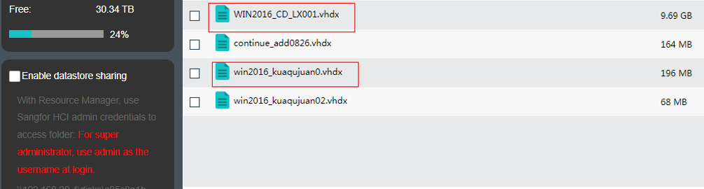 Enter the storage management page and upload the created VHD image to the specified path. After the upload is successful, the page will be refreshed to display the successfully uploaded image.