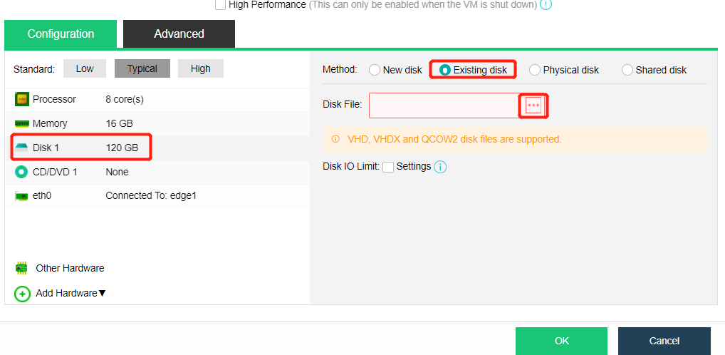 In addition to choosing to mount the existing VHD disk when creating the virtual machine, you can also mount the specified VHD disk by editing the virtual machine, adding disks, and selecting the existing disks.
