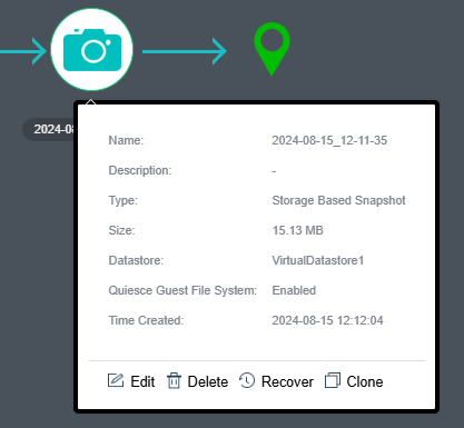 To delete, clone, or recover the VM from the snapshot, click the camera icon.
