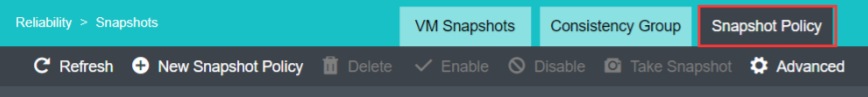 - Go to Reliability > Snapshots > Snapshot Policy.
